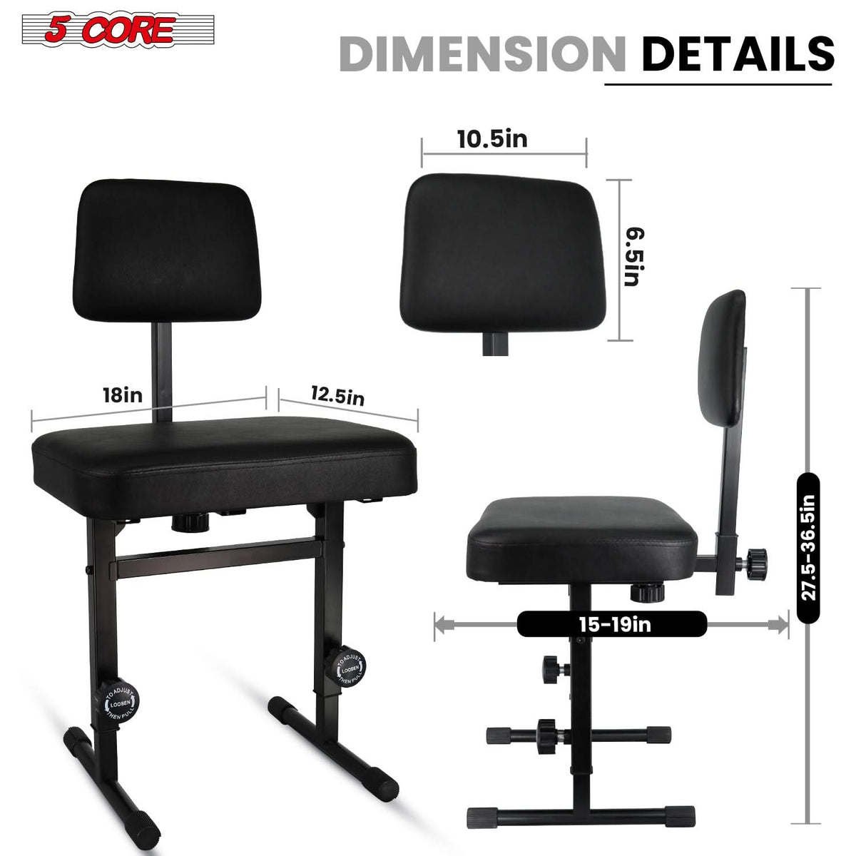 | Experience plush comfort and support with our adjustable piano bench, designed for both professionals and learners. The 12.5 x 18 inch wide seat with a 3 inch thick padded sponge cushion ensures long lasting comfort during extended practice or performances. With a weight capacity of 445 lbs, this beginner friendly musician chair offers durability and stability. The adjustable height (17.5" to 22) and wide backrest provide fantastic support tailored to your needs. Built from metal alloy, tough ABS, leather, sponge, and sturdy wood board, this piano stool combines strength and style, making this piano chair the perfect addition to any professional piano setup. |