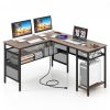 3.Large L-shaped Desk with Storage: A wide L-shaped desktop facilitates the placement of 2 monitors, lamps and other office supplies. The under-desk bookshelf also frees up more tabletop space. 2-tier storage shelves can be adjusted to 2 positions, which can accommodate items of different sizes, such as computer hosts, books and decorations.