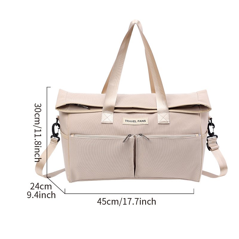[Portable travel bag] The folding size of this travel handbag is 11.8x9.4x17.7 inches (30x24x45 cm), the unfolded size is 15.7x9.4x17.7 inches (40x24x45 cm), and the weight is 0.6kg/1.3lbs. This travel bag can be carried with you on the plane without check-in. You don't have to worry about your important items and luggage being lost, damaged or stolen during the check-in process.. [Large-capacity and durable waterproof fabric] This travel bag is made of waterproof composite polyester material. There is a main bag and side bag inside, which can hold a variety of daily necessities. There are three compartments outside, which can store your water bottle, towel and mobile phone.Foldable design: The bag can be easily folded or unfolded, and the capacity is larger when unfolded, allowing you to put more items.A variety of back methods to use: This travel bag can be folded or unfolded according to your needs, with a large unfolded area and a larger capacity.Equipped with comfortable shoulder straps or handles to suit different scenes and personal preferences. You can adjust the length of the shoulder strap as a shoulder bag, messenger bag, or directly as a handbag.Whether it is a trip, a business trip or a sports trip, this travel bag will become your reliable companion.Simple design gift options: simple and generous design, durable and practical fabrics, can be give for your elders, friends, etc. on various holidays.